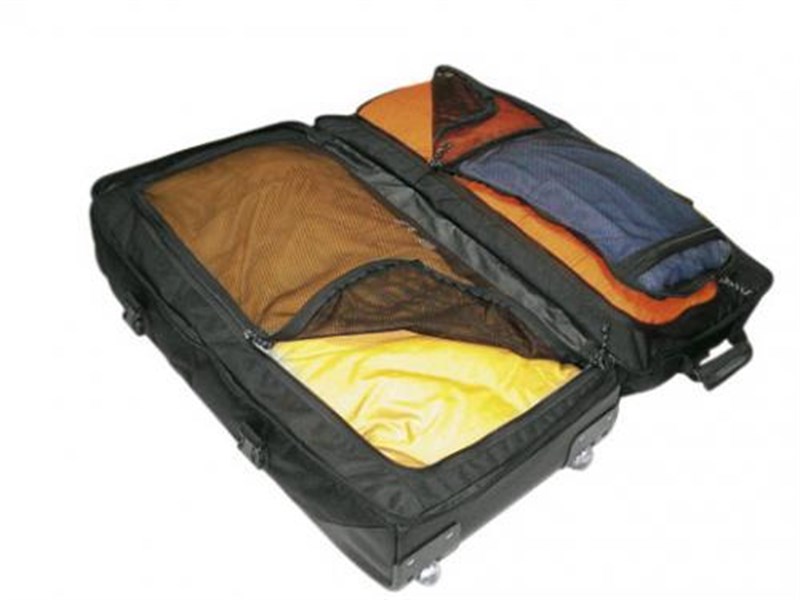 Supertex® 1000D Water Resistant fabric Reinforcements in rip- and scratchproof DuPontTM Hypalon® PVC reinforced bottom Dual height trolley transport system Double compartment Reinforced carrying handle Padded shoulder strap for carrying Pockets: large top pocket and mesh internal pockets Watertight zips Padlocking zips on main body and bottom compartment Inside and outside compression