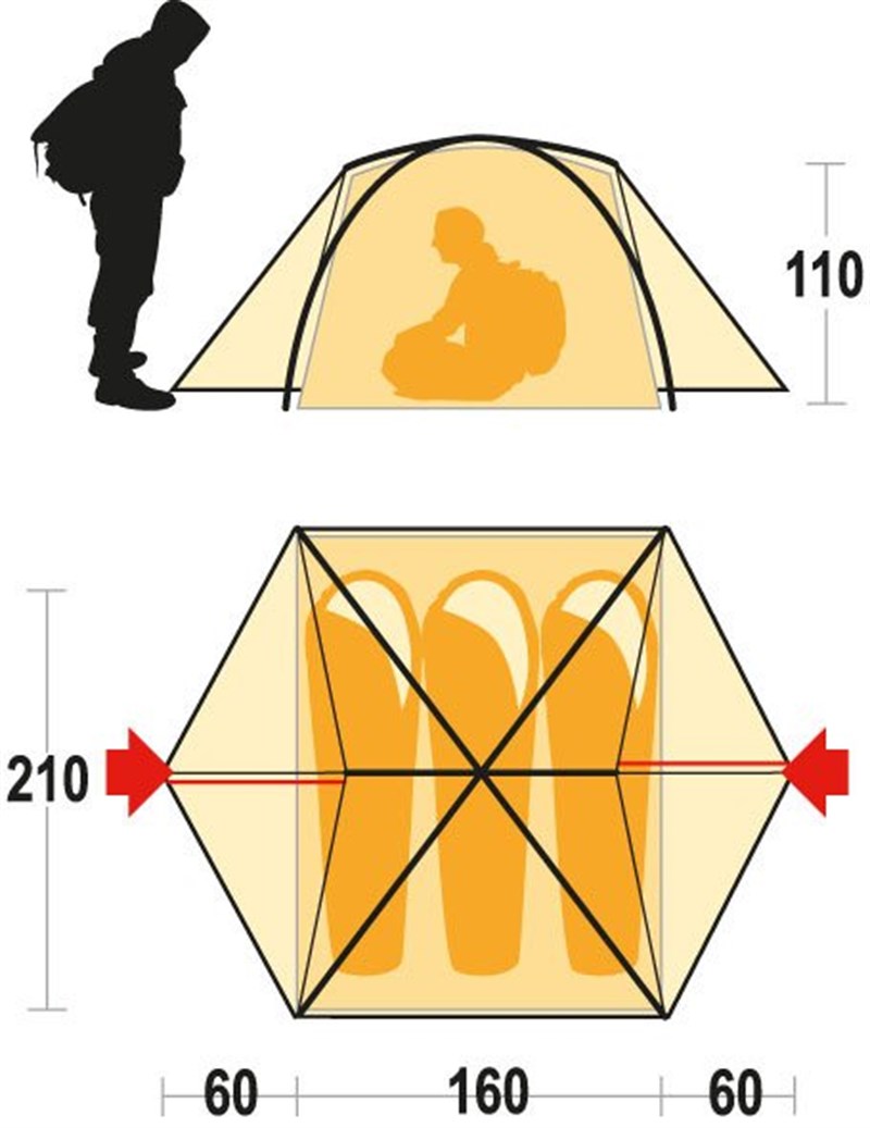 • Dış tente:  polyester 70D, 75 g/m², poliüretan kaplama, ısı yalıtımlı, 2000mm'ye kadar su geçirmez, su itici özellikte kumaş