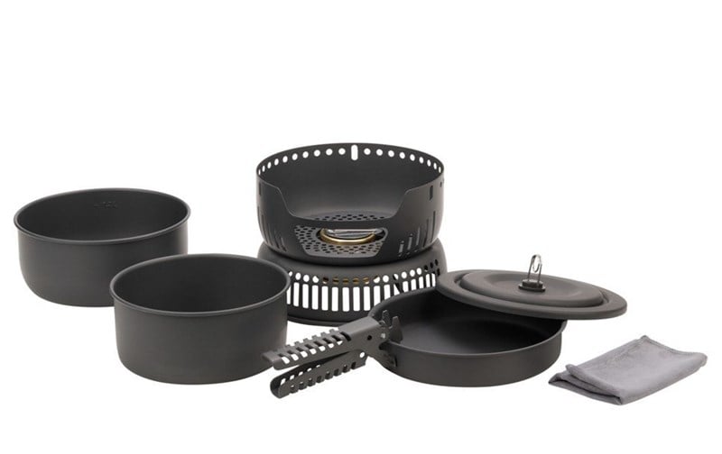 • Set: 2 adet tencere (1.7/1.4 litre) + 1 adet tava+ 1 kapak + rüzgar kesici +1 adet pişirme kabı tutacağı+1 adet alkolle çalışan ocak içerir