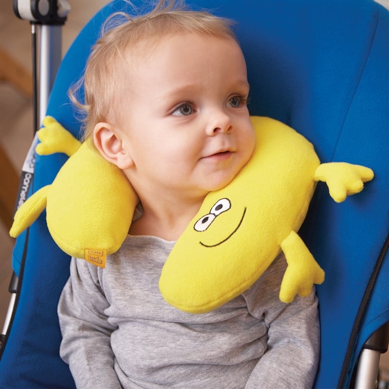 Seyahatleriniz sırasında bebeğinizin hem yastık hem de oyuncak olarak kullanabileceği köpük dolgulu yumuşak seyahat yastığı.