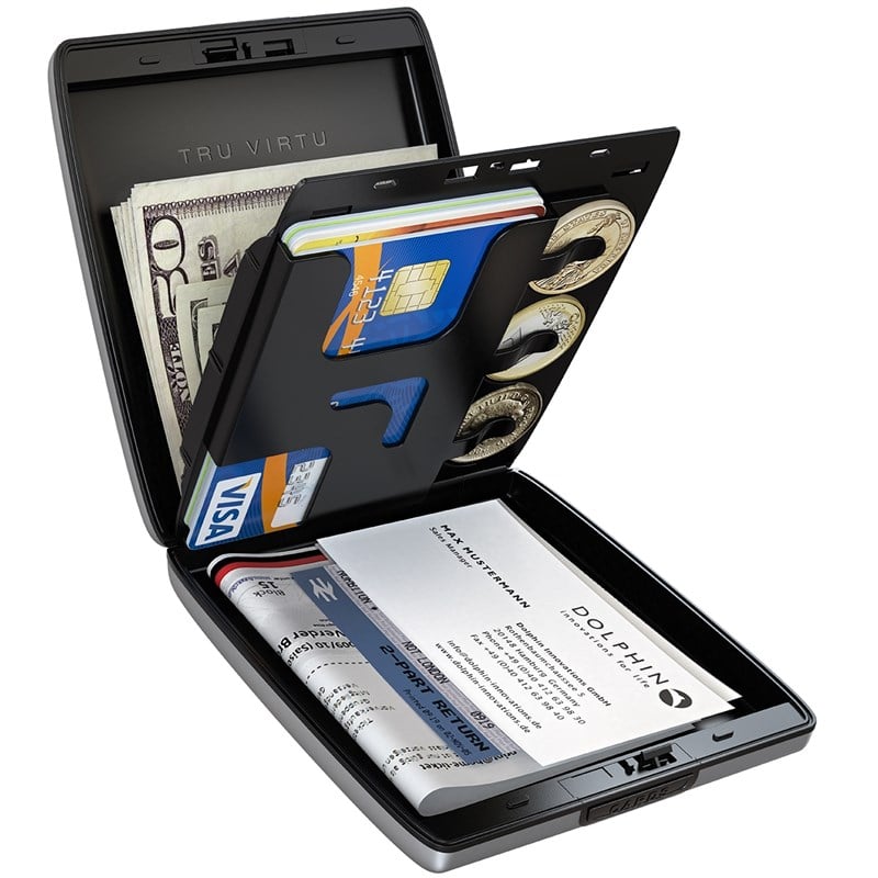 Tru Virtu® Money & Cards, patentli saklama sistemi sayesinde banknotlarınız ve kartlarınız birbirinden bağımsız bölmelerde tutulur. Her bölme kendi düğmesi sayesinde kolayca açılır.