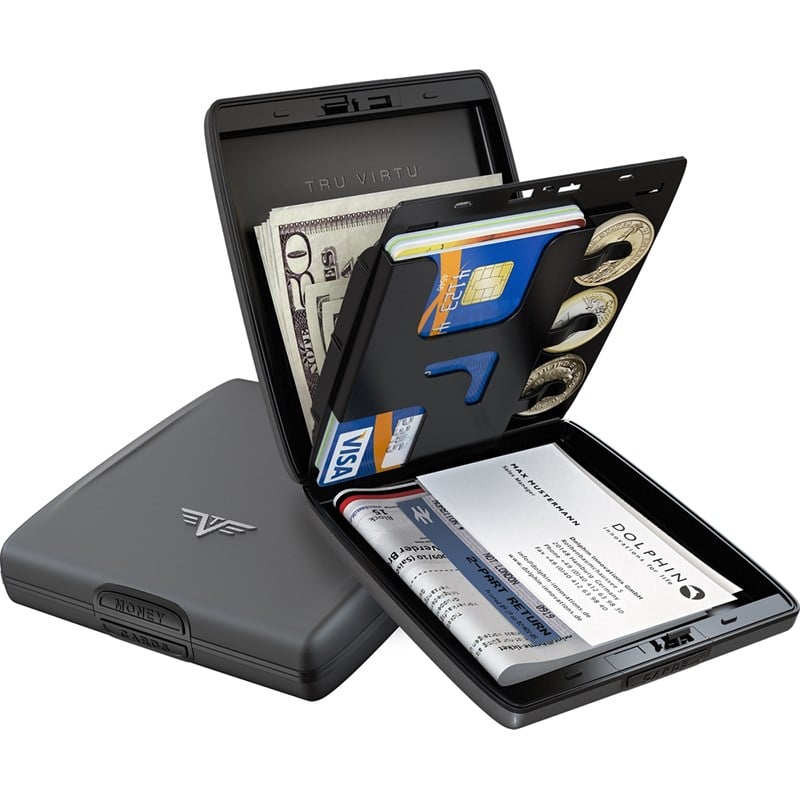 Tru Virtu® Money & Cards, patentli saklama sistemi sayesinde banknotlarınız ve kartlarınız birbirinden bağımsız bölmelerde tutulur. Her bölme kendi düğmesi sayesinde kolayca açılır.